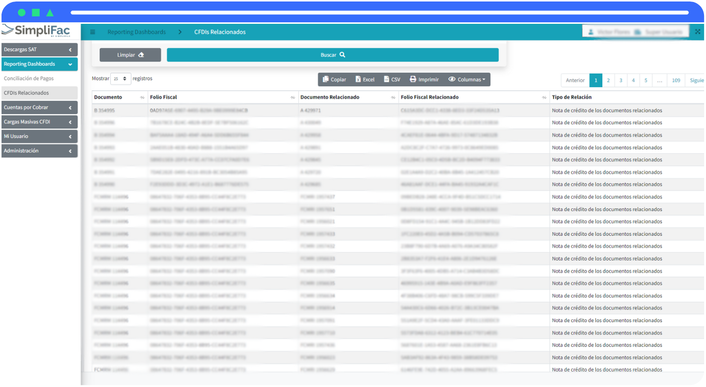 - Reporte de CFDIs Relacionados